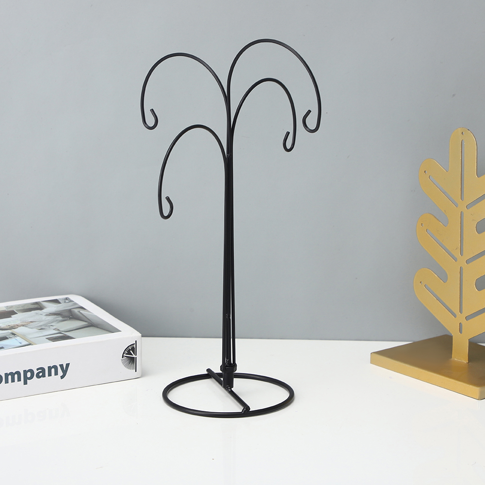 – 4-arm, 4-hook metal ornament display stand with clean tree-shaped silhouette
