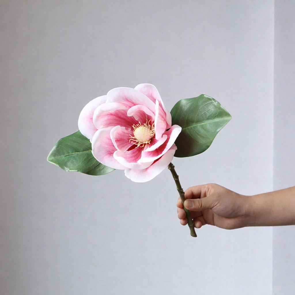 This artificial magnolia stem is suitable for photography props, product styling, lifestyle shoots, and decorative background use.