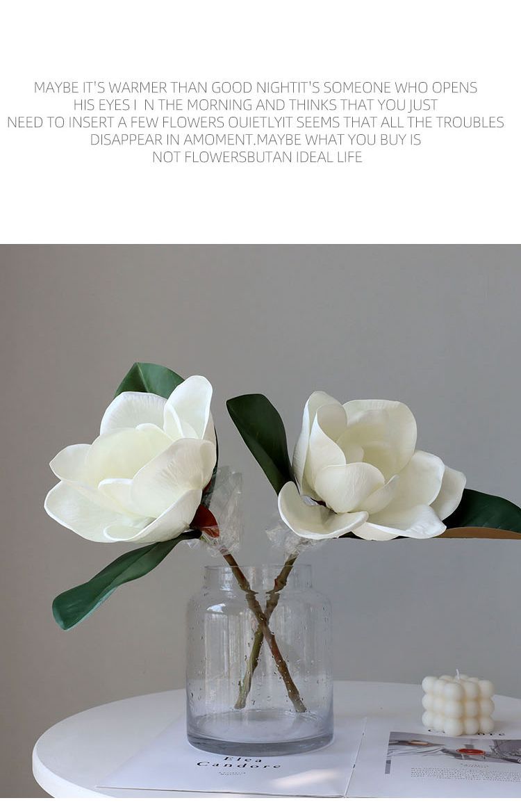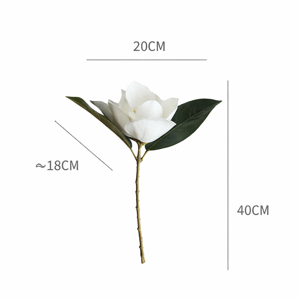 -This artificial magnolia stem is designed for buyers who want a more elegant floral product for wedding décor, home styling, photography props, and outdoor decorative use. Made from plastic, soft-touch material, and silk flower elements, it offers a fuller look, a softer visual effect, and a more refined presentation than many standard artificial flower stems.